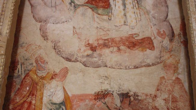 Anche nel nostro territorio esistono alcuni rilevanti richiami alla battaglia di Lepanto (l’odierna cittadina greca di Naupatto), uno è presente nell’antica chiesetta dedicata alla Madonna del Giardino, nella frazione di Tuturano, dove è visibile un affresco ritenuto risalente alla fine del cinquecento o i primi del seicento, sul quale sono rappresentati la Madonna del Rosario, il Papa Pio V, promotore della coalizione cristiana a cui fu attribuito il merito della vittoria navale, e altri protagonisti che determinarono il successo dell’impresa. La pittura murale, recuperata nel 1982 dopo quasi tre secoli di occultamento, è visibile sull’altare maggiore della chiesetta risalente al 1300 e quasi interamente riedificata nel 1598: all’interno di una ampia arcata spicca l’immagine di Maria Santissima con bambino sul trono di nuvole, coperti nella parte superiore dall’altare barocco posto successivamente. In basso a sinistra il Santo Padre raffigurato in atto di preghiera, riconoscibile dal piviale rosso sul vestito bianco e la tiara sulla testa; di fronte le figure di “due contadine dal volto rubicondo, in ginocchio in una lunga veste che sono senza dubbio le committenti di tutto l’affresco, se non proprio le pie donne che con l’aiuto delle offerte raccolte tra i fedeli costruirono o ricostruirono la chiesa” (Marco Fina). Alle spalle del pontefice sono rappresentati i due personaggi principali della battaglia navale, don Giovanni d’Austria – figlio di Carlo V – e Marcantonio Colonna, rispettivamente comandante e luogotenente generale della flotta cristiana, entrambi con un diadema sul capo. Sono inoltre raffigurati Santa Caterina, coperta dalla colonna dell’altare, e un personaggio ottomano in atteggiamento di preghiera, individuabile dal volto bruno e dal tipico turbante: secondo alcuni studiosi il turco potrebbe rappresentare un “convertito alla religione cristiana” dopo la sua cattura nella battaglia del 1571.