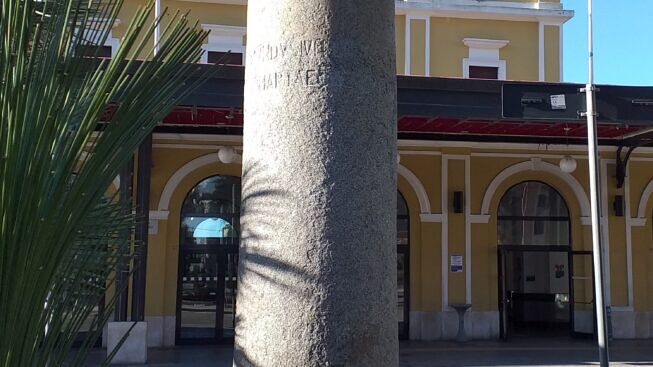 Al centro dell’aiuola di Piazza Francesco Crispi, proprio di fronte all’ingresso della stazione ferroviaria, tra le piante ornamentali si scorge una colonna di granito ornata da un raffinato capitello corinzio di forma tronco conica, un monumento apparentemente privo di significato ma che in realtà cela una storia piuttosto movimentata, tutta da conoscere.
