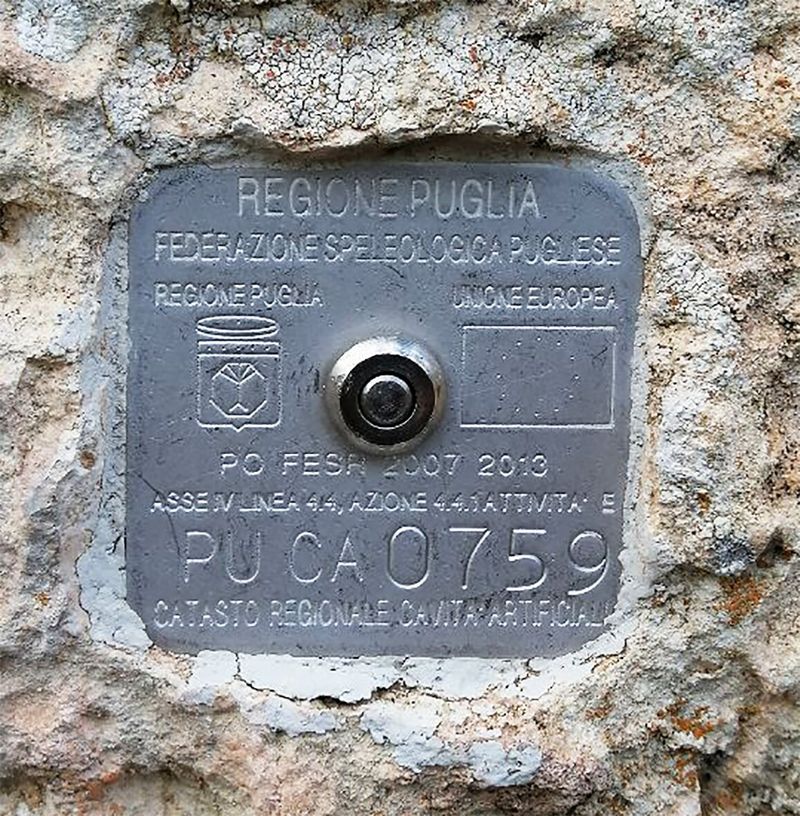 La cavità è censita anche dal Catasto Regionale delle Grotte e delle Cavità artificiali al n. PUCA0759, al cui sito è possibile trovare la scheda redatta ed archiviata, in ottemperanza di un progetto Nell’ambito del POR Puglia 2000/2006, l’Ufficio Parchi e Riserve dell’Assessorato Regionale all’Ecologia, in partenariato con la Federazione Speleologica Pugliese coinvolgendo il Dipartimento di Ingegneria Civile e Ambientale del Politecnico di Bari, il Dipartimento di Geologia e Geofisica dell’Università degli Studi di Bari e il Dipartimento di Zoologia dell’Università di Bari, ha approntato una scheda catastale, corredata di linee guida per la compilazione conforme e con più informazioni rispetto a quelle relative alle direttive nazionali della SSI.