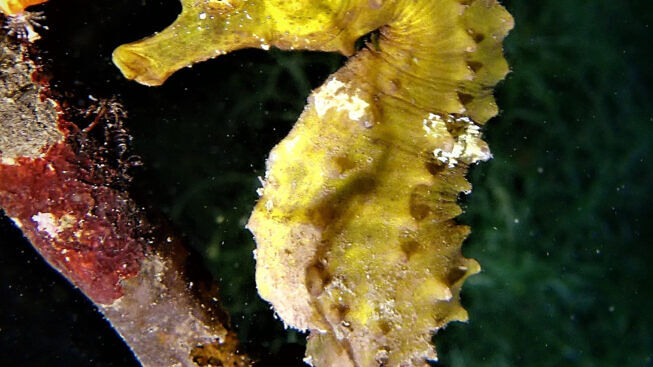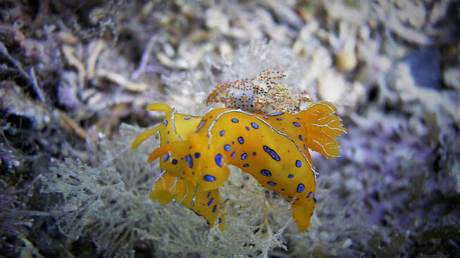 L’aspetto più interessante nelle nostre immersioni invernali fatte sottocosta, è sempre quello della bellezza e della incredibile varietà della fauna marina presente: la parte meno profonda è colonizzata da tantissime spugne gialle (Aplysina aerophoba) dalle strane forme quasi aliene e, man mano che si scende si incontrano tanti nudibranchi, strani lumaconi senza guscio, della lunghezza che può variare, a seconda delle specie, da pochi millimetri fino anche ad una dozzina di centimetri, con i loro curiosi ciuffi branchiali ben in mostra e dalle diverse tonalità cromatiche, dal giallo, all’azzurro, dal marrone al blu intenso, ma, specie nella stagione più fredda, non mancano incontri con specie più rare e dai colori vivacissimi.