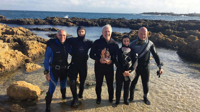 La circostanza fortunata che quest’anno il giorno di santa Lucia abbia coinciso con una domenica, unitamente al fatto che la temperatura non fosse particolarmente rigida ed il mare, dopo le onde impetuose dei giorni precedenti, si fosse calmato, ha fatto si che oltre che al presepe in casa, potessimo anche provvedere a sistemare la Natività nella ormai consueta grotticella sottomarina poco a nord della conca di Materdomini, sul litorale nord di Brindisi.