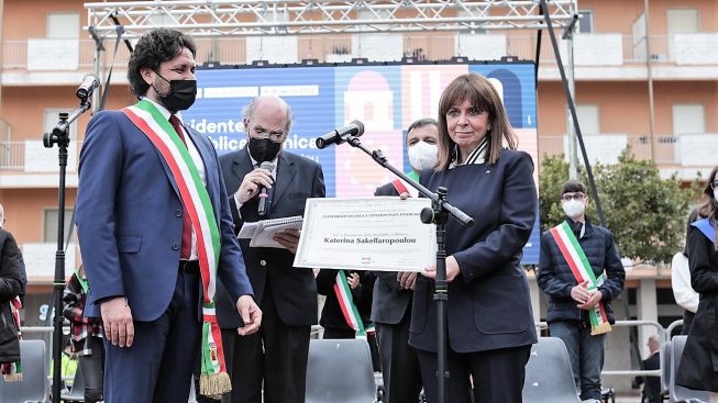 Lo scorso fine settimana Brindisi ha avuto l’onore di ospitare S.E. Katerina Sakellaropoulou, Presidente della Repubblica Ellenica, la Ministra alla Cultura Lina Mendoni, accompagnate dall’Ambasciatore di Grecia in Italia. Va, subito, precisato che quella a Brindisi, dove la delegazione greca è giunta l’8 aprile, è stata una visita privata, voluta dalla Presidente, la quale ha accolto l’invito in tal senso del Consolato Onorario di Grecia in Brindisi per la circoscrizione di Brindisi Lecce e Taranto, proprio per poter conoscere, quasi alla stregua di una comune comitiva turistica, la nostra bella città e risiedervi nei giorni in cui è stata impegnata nella visita istituzionale del 9 e 10 aprile, nel Basso Salento, in occasione del ventennale della fondazione dell’Unione dei Comuni della Grecìa Salentina.