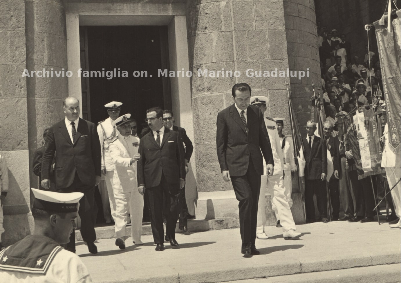 Alla funzione parteciparono inoltre l’on. Abate, l’on. Carlo Mugnozza Scarascia e il sen. Antonio Perrino, insieme a tutti i principali rappresentanti locali: Vitantonio Palma in qualità sia di presidente dell’amministrazione Provinciale che di presidente del comitato promotore, il sindaco Luigi Capone, il questore Paolo Panzera e il prefetto Ciro Conte, a cui giunsero numerosi telegrammi di ringraziamento per l’organizzazione e la riuscita dell’evento. Tra i presenti anche il Capo di Stato Maggiore della Marina ammiraglio Giurati ed altri importanti rappresentanti delle Forze Armate. A fare da cornice alcune unità della Squadra Navale ormeggiate nel seno di ponente, ovvero le navi Garibaldi, Impavido e Etna, visitate da un gran numero di brindisini al termine del raduno, e ad “aggiungere alla manifestazione una significativa nota di colore, di entusiasmo e di commozione” la banda della Marina Militare, che nel pomeriggio ebbe un concerto in piazza della Vittoria. La cerimonia continuò all’interno della cripta del Monumento al Marinaio con lo scoprimento di due lapidi sulle quali sono incisi i nomi delle 126 medaglie d’oro alla memoria della prima e Seconda guerra mondiale. Durante tutta la giornata le bandiere nazionali furono esposte sui pubblici uffici e venne disposta la chiusura delle strade cittadine sul percorso del Ministro.