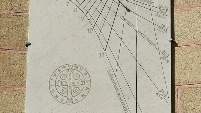 Presso il santuario di Cotrino, una meridiana scandisce il volgere dell’ombra col sole, i padri cistercensi hanno posizionato anche una tavola esplicativa che a non tutti viene facile capire il passare del tempo.