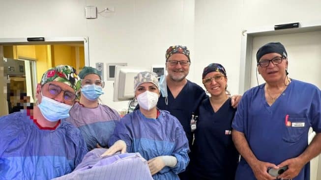 Nei scorsi giorni nell’Ospedale DEA V. Fazzi di Lecce, nella UOC di Chirurgia generale, diretta dal dottor Marcello Spampinato, è stato eseguito un delicatissimo intervento chirurgico: i chirurghi senologi Salvatore Tondo e Arturo Baglivo, coadiuvati dalla dottoressa Valentina Loconte e dal dottor Salvatore Santobuono della Chirurgia Plastica, reparto che collabora strettamente con la Chirurgia negli interventi ricostruttivi, e con l’assistenza anestesiologica, hanno asportato un gigantesco tumore della mammella. La neoplasia, in fase di studio presso la UOC di Anatomia Patologica, si presentava come una massa riccamente vascolarizzata – del peso di oltre 7 chilogrammi e delle dimensioni di 37 centimetri – tenacemente adesa alla parte toracica sino al cavo ascellare.