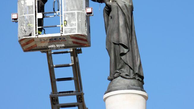Dal 1949 si officia anche un’altra importante celebrazione in onore dell’Immacolata Concezione: la deposizione di una corona di fiori sulla statua bronzea della Madonna posizionata sulla colonna di piazza di Spagna a Roma. È una consuetudine affidata ai Vigili del Fuoco che l’8 dicembre di ogni anno, utilizzando un’autoscala, rendono omaggio alla Madonna non solo nella capitale, ma anche in tante altre piazze d’Italia, un momento particolarmente sentito e seguito dalla popolazione e dalle istituzioni civili, militari e religiose. Al termine della preghiera un lungo suono di sirene viene diffuso per la città, come ringraziamento, devozione e protezione. La celebrazione si svolge anche a Brindisi, in piazza Duomo, con l’omaggio floreale offerto alla Madonna Pellegrina che si erge sulla colonna al centro della piazza, un monumento sorto a memoria dell’anno mariano del 1954 e inaugurato l’8 dicembre 1955 dall’arcivescovo Nicola Margiotta.