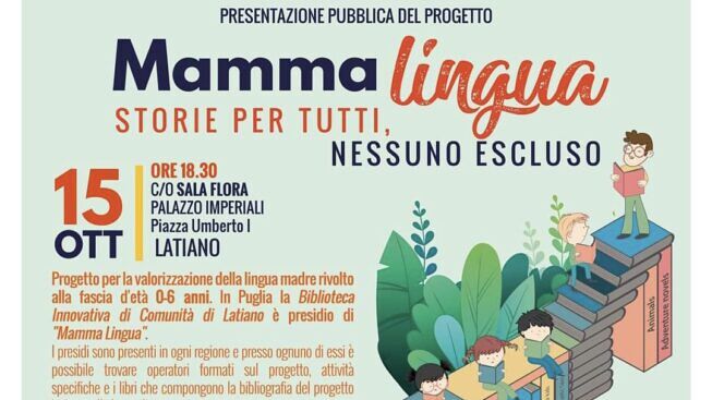 Approda in Puglia, in particolare a Latiano, il progetto “Mamma lingua. Storie per tutti, nessuno escluso”, un progetto per la valorizzazione della lingua madre rivolto alla fascia d’età 0-6 anni delle più numerose comunità straniere del paese.