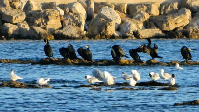 E, in continuità con il porto, là dove si sviluppa la bassa scogliera che caratterizza il litorale nord (Sciaia a mare, Materdomini, Punta del Serrone, Punta Penne) quasi come una barriera corallina che orna la nostra costa, anche lì si prosegue per il censimento degli uccelli marini svernanti, occupati a banchettare o a sostare accanto ai più conosciuti Cormorani, Gabbiani ed Aironi.