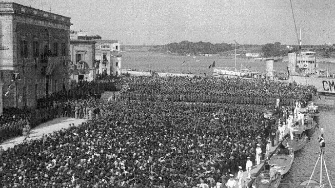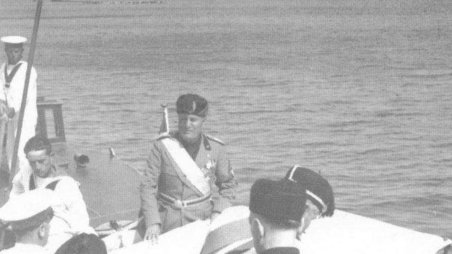 La autorità locali accolsero l’importante ospite nel salone principale del palazzo del governo, e quando il Duce si affacciò dal balcone per parlare al popolo, vide davanti a se la piazza gremita di gente: una moltitudine di camice nere e di comuni cittadini agitavano festanti cappelli e fazzoletti, tantissime persone affollavano anche la sponda opposta del porto, assiepati sulla scalinata e nel piazzale antistante il Monumento al Marinaio, con le acque del Seno di Ponente punteggiate da ogni genere di imbarcazione; furono necessari ripetuti squilli per acquietare la folla acclamante e dare modo al podestà di rivolgere al primo ministro il saluto a nome della cittadinanza. Nel discorso pronunciato da Mussolini vi furono riferimenti all’elevazione di Brindisi a capoluogo di provincia, avvenuta nel 1926 proprio per suo volere, e dopo aver chiesto obbedienza e fedeltà assoluta alla Patria, annunciò l’avvio dei lavori di edificazione dell’Accademia Navale dell’Opera Nazionale Balilla, quello che poi sarà il Collegio Navale “Tommaseo”.