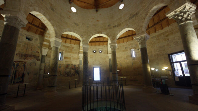 In questa fase prese forma anche il fenomeno delle imitazioni architettoniche degli edifici, focalizzate soprattutto nella basilica del Santo Sepolcro di Gerusalemme, il complesso edificato a partire dal 326 dall’imperatore Costantino per esporre la Tomba di Cristo. Le “imitationes” del tempio si moltiplicano in modo esponenziale tra il 1099 e il 1187: dal Piemonte alla Lombardia, dal Lazio alla Puglia i pellegrini incontravano lungo il percorso una serie di copie della Rotonda della Resurrezione, queste “offrivano la possibilità di un pellegrinaggio quantomeno mentale a coloro che erano impossibilitati a compierlo fattualmente – chiarisce il prof. Marella – ed inoltre, offrendosi ai fedeli come un’anticipazione delle gioie visive della Terrasanta, stimolavano costoro alla partenza o alla prosecuzione del cammino”. I numerosi studi hanno ampiamente sottolineato come la chiesetta brindisina di san Giovanni al Sepolcro, “l’unica testimonianza monumentale sopravvissuta e la prima a comparire nei documenti”, sia una delle più interessanti riproduzioni occidentali dell’Anastasis della Città Santa, “in particolare essa riprende l’assetto del vano centrale circolare, che a Brindisi risulta però ridotto ad otto colonne, ciò a riverberare la molteplicità dei significati simbolici del santuario, sia nella forma che nella ripetizione del numero otto. Qui i fedeli percepivano con immediatezza tutta una trama di significati e di rimandi religiosi, a partire dal messaggio di Salvezza finale legato al sepolcro e alla Resurrezione”. Il prof. Marella pone l’attenzione anche sull’interessante graffito presente sulla parete esterna del tempietto, nei pressi del portale occidentale (quello più antico che immette nel suggestivo giardinetto), dove è incisa l’immagine di una nave con alla prua una testa zoomorfa, si tratta della tipica drakkar, la formidabile nave “drago” vichinga utilizzata nel medioevo per il trasporto dei pellegrini in Terrasanta: “il segno allude chiaramente al viaggio via mare verso l’Oriente, è un simbolo del viaggio salvifico dei fedeli tra le insidie del peccato, espressione della religiosità spontanea e popolare dei pellegrini di passaggio. Imbarcarsi nel Medioevo era impresa rischiosissima – illustra lo studioso brindisino – si andava incontro ad un destino ignoto, con le tempeste marine, i naufragi e la morte sempre in agguato. I naviganti si ponevano sotto la protezione di Dio e si affidavano al Suo giudizio: ‘in nome di Dio facemmo vela’, recita la formula propiziatoria dei loro diari di viaggio, e al ritorno in Occidente lodavano il Signore con tutto il cuore per lo scampato pericolo”.