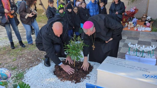 Nella giornata di oggi, 21 marzo, il sindaco Vito Leccese e l’arcivescovo di Bari-Bitonto, monsignor Giuseppe Satriano, insieme agli studenti della scuola elementare “Clementina Perone”, hanno presenziato, nel cimitero monumentale, all’evento “Seminiamo e coltiviamo speranza e memoria”, organizzato per ricordare Angelo, il neonato trovato senza vita nella culla termica della parrocchia di San Giovanni Battista, a Poggiofranco.
