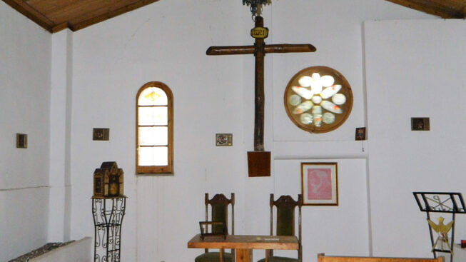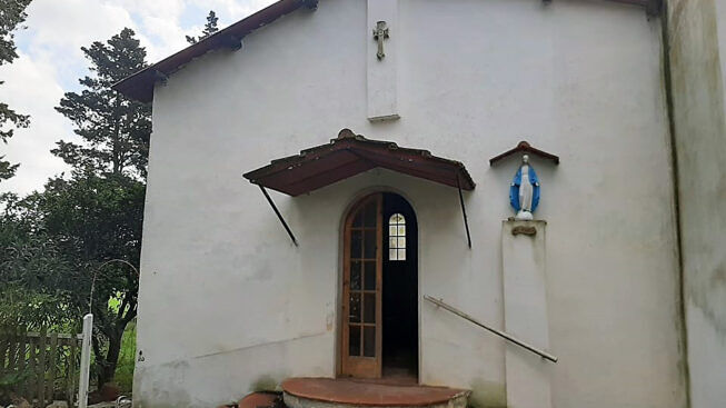 Un vero salto al cuore mi ha provocato, girato l’angolo a sinistra della costruzione principale, la suggestiva chiesetta rurale, con tanto di statuetta della Madonna con l’azzurro manto, ed il suo interno addobbato come se il tempo si fosse fermato a quando il padre gesuita Mario Marafioti, storico fondatore della Comunità Emmanuel, vi celebrava la santa messa.