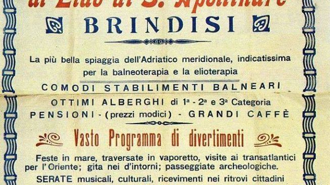 Una rotonda con due lunghe ali di camerini tese ad abbracciare un arenile di sabbia dorata e ombrelloni colorati come fiori di campo. E, di fronte, un mare al quale il Castello rosso da un lato e le Pedagne dall’altro tolgono il senso dell’infinito. Un mare che diventa un’immensa piscina solcata, come nelle fiabe, da bianche motonavi. Era questa la spiaggia dei brindisini, era questa Sant’Apollinare, lo stabilimento balneare rimasto nel cuore di quanti hanno avuto la fortuna di frequentarlo.