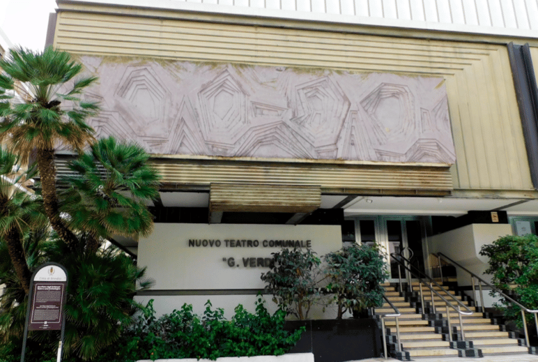 Su questi importanti reperti si sviluppa ora il teatro comunale “Giuseppe Verdi”: si tratta di una struttura estesa, per rimanere in tema, quanto un campo di calcio che ha avuto tantissime vicissitudini a partire dalla circostanza che, nel corso degli scavi emersero nuovi reperti di epoca romana di gran pregio ed interesse storico che portarono nell’aprile del 1969 alla sospensione dei lavori a seguito di un esposto di Italia Nostra e l’intervento della Soprintendenza Archeologica della Puglia, per cui fu predisposto ed attuato un piano tendente alla conservazione dei reperti archeologici; nel 1970 i lavori ripresero, ma proprio in ragione dei continui interventi a tutela di detto patrimonio, andarono molto a rilento. Dopo la morte del commendatore, nel 1974, una lunga sequela di problemi: fra fallimenti e contenziosi giudiziari, fino a giungere, a 35 anni dalla posa della prima pietra, alla prima inaugurazione con un concerto del maestro Salvatore Accardo.