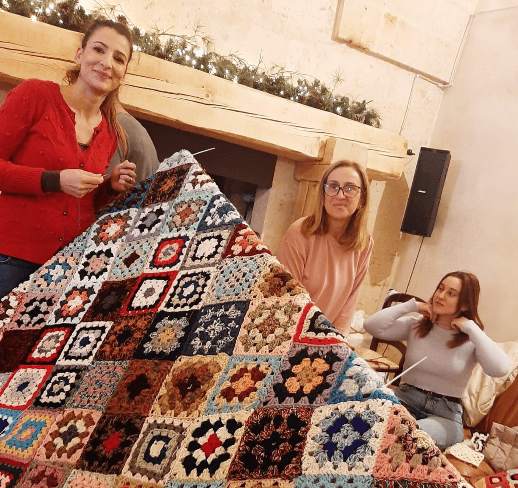 Lorena Caramia, Paola Andresano, Rossella Quaranta, Clara Carrozzo, Viola Angelè, Carmela Caroli, Rossella Caramia, Filomena Caramia, Antonella Pungente e la sempre presente signora Marisa e altre che hanno aiutato gli abitanti ad assemblare le tantissime piastrelle di lana.