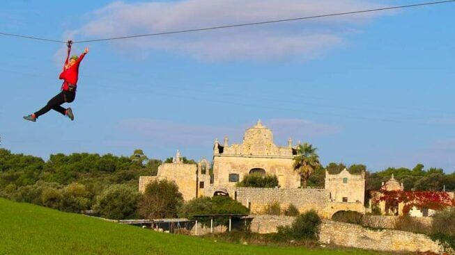 Il parco si sviluppa in un’area privata di oltre 80 ettari, quasi tutti boschivi, dove sia grandi che piccini possono vivere l’emozione di arrampicarsi sugli alberi, di volare, imbragati in assoluta sicurezza, tra le fronde dei maestosi alberi di querce, esplorare il bosco, praticando tante divertenti attività sportive adatte a tutti. Sono tutti quanti percorsi realizzati nel totale rispetto dell’ambiente e si estendono nel cuore di un suggestivo bosco secolare di querce. Il tutto è svolto nella massima sicurezza e sotto il controllo di esperti istruttori. I percorsi sugli alberi, calibrati per fasce di età e secondo i diversi gradi di difficoltà, hanno nomi che si rifanno alla fauna selvatica e sono dotati dell’ innovativo sistema di sicurezza in continuo: ogni utente è agganciato in automatico al cavo di sicurezza da inizio a fine percorso. Il tutto si sviluppa in mezzo agli alberi attraverso pedane di legno e giochi acrobatici e di equilibrio come il ponte tibetano, le scale sospese, le passerelle, liane e divertenti teleferiche da cui si plana tra le fronde degli alberi e sui sentieri del bosco e del prato, sino al “volo del gheppio” , il salto più spettacolare in cui si vola letteralmente come il rapace che gli da il nome, attraverso la vallata con vista particolare sulla suggestiva settecentesca Masseria Carestia; una emozione davvero mozzafiato, come ho avuto modo di provare personalmente un paio di anni addietro.
