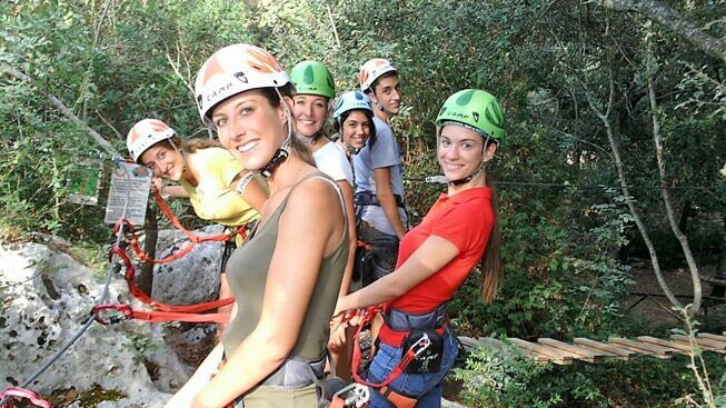 “Proponiamo numerose attività sportive outdoor, svolte nel bosco e nei prati, oltre ai famosi percorsi tra gli alberi, quali: il nordic walking (camminata con i bastoni) con passeggiate lungo i sentieri del bosco, l’arrampicata sportiva su parete artificiale e sugli alberi, l’orienteering denominato proprio “lo sport dei boschi” (consistente nel sapersi spostare su terreni sconosciuti, boscosi e impervi, servendosi solo della bussola e di una mappa, nel minor tempo possibile e senza mancare alcun posto di controllo), il laboratorio di falconeria con cui è possibile conoscere dal vivo habitat caratteristiche e curiosità di rapaci diurni e notturni, da poter accarezzare e tenere sul guantone, il tiro con arco, con lezione teorica, pratica e gara finale, le escursioni naturalistiche a piedi ed in bici e le escursioni con cavalli e carrozze. Ospitiamo scuole di ogni ordine e grado per le gite scolastiche, proponendo oltre alla giornata multisportiva anche numerosi laboratori didattico ambientali.”