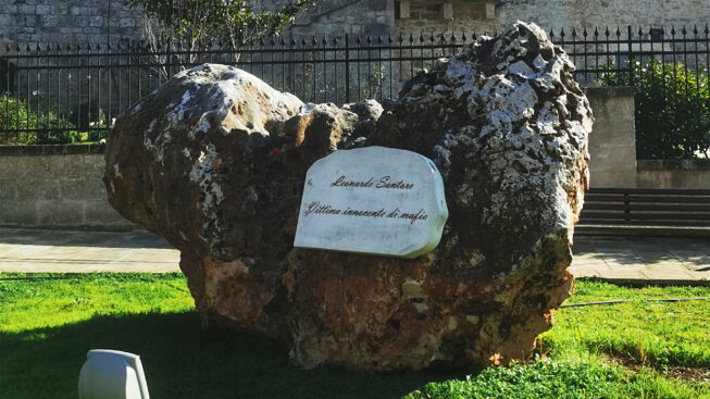 Le mura fredde e i grandi volumi, tutti ancora da definire, sono suggestionati dalla presenza estemporanea alla tastiera di un organo, di mani gentili ed io mi siedo ad ascoltare note sacre e quello spazio che prima era freddo che a riscaldarlo il prete ci ha messo diverse stufe a fungo, si riscalda al senso del sacro che esce dai tasti. Quelle poche parole che conosco e che mi sembrano adatte, le rivolgo al ricordo di Leonardo, morto innocente di mafia, divenuto, malgrado lui, una pietra, un masso contro il quale sbatte l’ingiustizia, la mafia, il malaffare.