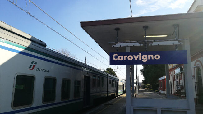 Da Torre Santa Sabina, la cui restaurata torre, abbandonata la sua funzione primitiva di avvistamento degli invasori saraceni e donata alla piacevole suggestione degli occhi, come il seno di mare che la lambisce, mi avvio verso Carovigno percorrendo la strada provinciale n. 34 che a circa 3mila metri dal centro abitato, incrocia la ferrovia adriatica e la locale stazione, pure essa rivificata e frequentata dal piccolo esercito di pendolari verso i centri maggiori. Una piccola bretella riconnette l’attuale tracciato che sovrapassa la linea ferrata, a quello originario che accarezzava e si insinuava tra gli ulivi prima di arrivare dinanzi alla stazione ed al vecchio passaggio a livello, oramai chiuso. Il piccolo tratto sarebbe bene, porlo sotto tutela, tanto è utile preservarlo alla vista di chi distratto neppure s’accorge che la lentezza e la misura delle comunicazioni erano tarati, fino a troppi anni fa per una velocità a misura d’uomo. I romantici paracarri zebrati nulla possono al cospetto delle attuali barriere jersey.