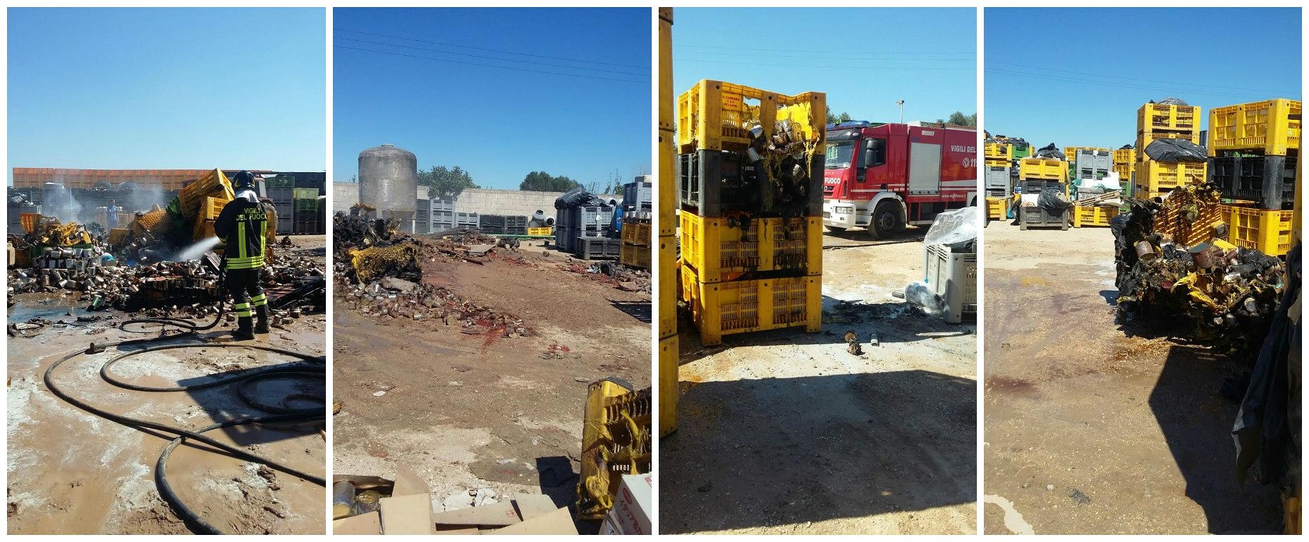 Un incendio si è sviluppato nel pomeriggio di oggi nel piazzale esterno dell’azienda Conserve Italia di Mesagne. Sono andate distrutte cataste di pelati che erano stati già stoccati. Sul posto sono intervenuti i vigili del fuoco del comando provinciale di Brindisi con due partenze e un’autobotte. I danni ammontano a diverse decine di migliaia di euro. Sulle cause dell’incendio bisognerà attendere gli accertamenti tecnici.