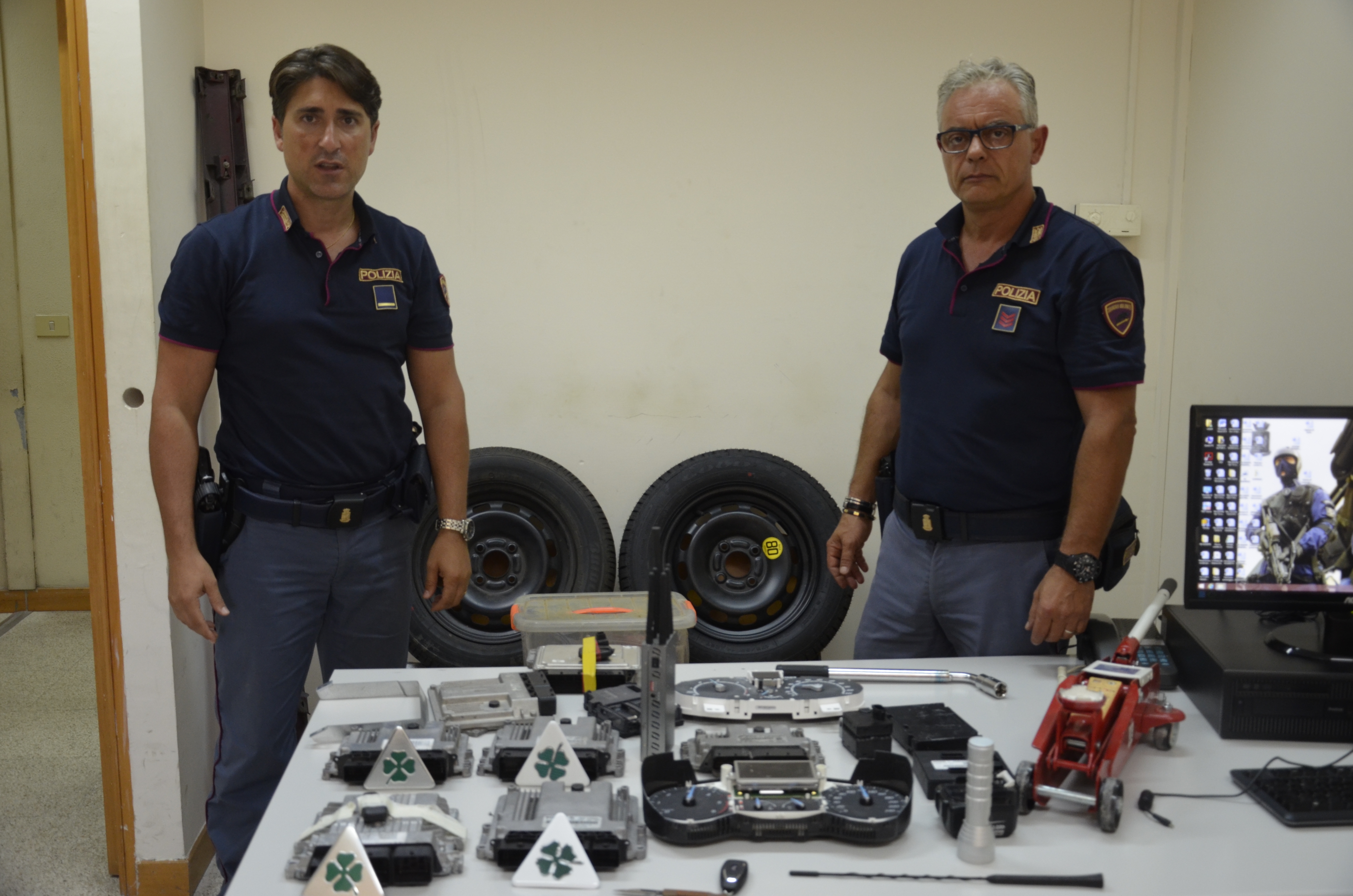 Divelti i lucchetti del garage, sono state rinvenute decine di centraline, decodificatori e jammer per autovetture Alfa Romeo, Renault, Fiat, Ford, Audi. All’interno del garage, il cui proprietario era ignaro fosse utilizzato come base operativa della banda, è stata rinvenuta anche una Ford Kuga super accessoriata rubata due giorni fa nella città di Lecce e restituita al legittimo proprietario.