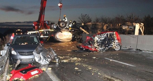 Il conducente del tir che trasportava olio e aveva un rimorchio di dimensioni superiori al consentito, percorrendo la statale 379 Bari – Brindisi, una volta all’altezza di Fasano, “per colpa consistita in imprudenza, imperizia e negligenza” e con “guida distratta per l’uso del cellulare e in condizioni di affaticamento, essendosi posto alla guida del mezzo sin dalle ore 5 e avendo già effettuato trasporti analoghi per 380 chilometri circa” si accorse “in ritardo dell’autovetture che lo precedeva nel suo stesso senso di marcia” e non “rispettò l’idonea distanza di sicurezza dal veicolo”. Quindi “effettuò una veloce sterzata a sinistra nel tentativo di sorpassarlo e subito dopo, per evitare di collidere contro il new-jersey, controsterzò a destra, ma a causa dell’elevata velocità, pari a circa 85-90 chilometri orari, superiore al massimo imposto di 70 chilometri orari, e comunque non adeguata al carico del veicolo, perse il controllo del mezzo”.