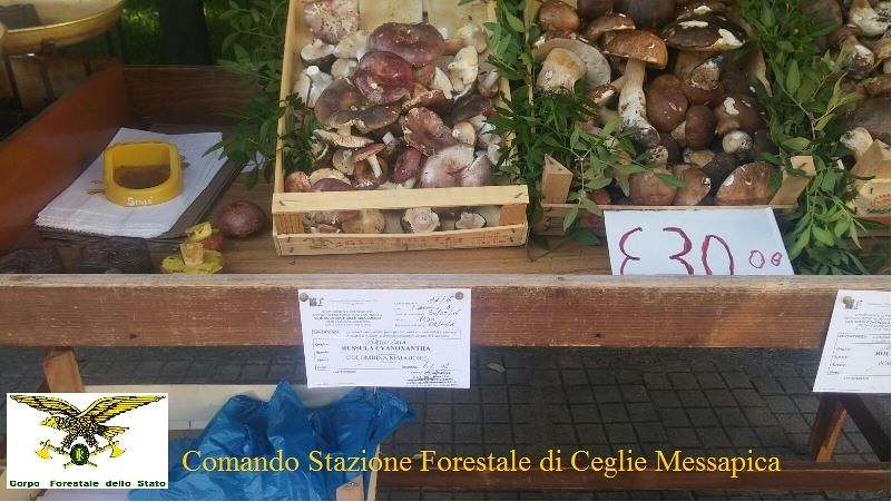 Il personale del Comando Stazione Forestale di Ceglie Messapica ha contestato ad un venditore ambulante una sanzione amministrativa pari a 344 euro per la mancanza dell’Autorizzazione Comunale alla vendita dei funghi freschi.