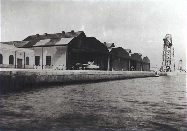 Nel corso dello stesso anno 1916 furono costruiti i 6 hangars per gli idrovolanti da bombardamento progettati dall’ingegnere Luigi Bresciani. Adiacenti e a nord degli hangars Bresciani, si costruirono anche 3 enormi hangars per dirigibili i quali peró furono presto dismessi e trasferiti a San Vito dei Normanni, per ragioni di sicurezza. Gli hangars Bresciani invece, con muratura di tufi e cemento e con copertura a botte con sesto ribassato in solaio latero-cementizio, sono ancora oggi attivi ed utilizzati dall’ONU.