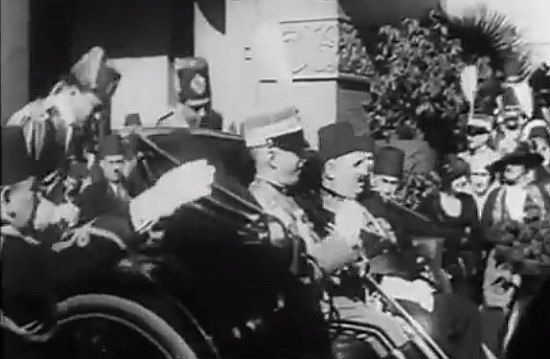 Vittorio Emanuele III e Re Fuad I in carrozza all’arrivo in Egitto (immagini Istituto Luce)