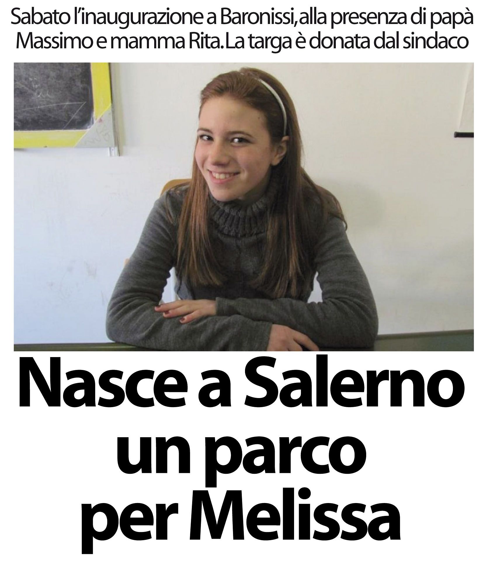 «I fiori, gli alberi, il vento faranno compagnia al tuo desiderio di libertà» è la frase incisa sulla targa in memoria di Melissa, donata dal primo cittadino di Baronissi, Giovanni Moscatiello. L’8 ottobre scorso, con una delibera di giunta, il consiglio comunale del piccolo centro in provincia di Salerno, ha deciso di intitolare il nuovo spazio verde cittadino a Melissa Bassi.