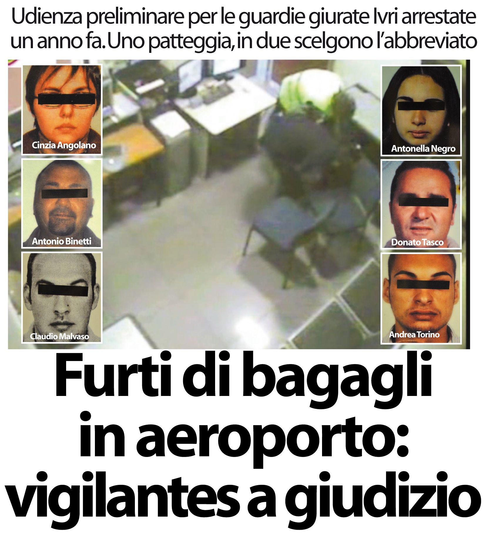 Si dirama lungo tre direttrici diverse il cammino giudiziario di sette dei nove indagati finiti agli arresti domiciliari nell’aprile del 2012, accusati d’aver razziato e svuotato i bagagli di alcuni passeggeri all’interno dell’aeroporto di Brindisi. Si tratta di sei guardie giurate dell’Ivri e di un operaio aeroportuale della ditta Oasis filmati a loro insaputa da una telecamera nascosta dagli investigatori mentre s’intascavano contanti, profumi, cellulari e perfino cartoline trovati nei bagagli che avrebbero dovuto solo controllare per ragioni di sicurezza.