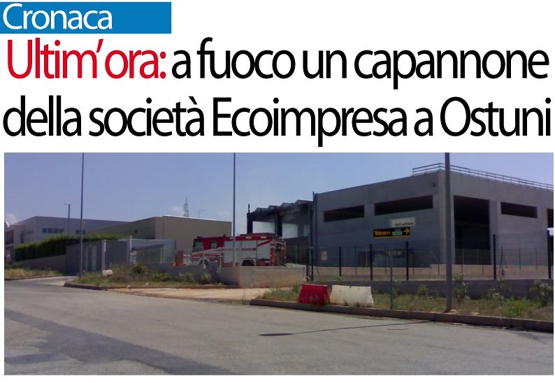 Un incendio – pare di notevoli proporzioni – è divampato presso l’Ecoimpresa di Ostuni, società che si occupa di gestione rifiuti, anche speciali e pericolosi. A prendere fuoco lo stesso capannone interessato dalle fiamme due anni fa, quando andò quasi distrutta l’ala avvolta dalle fiamme. Sul posto i vigili del fuoco del distaccamento di Ostuni e i colleghi di Brindisi. Il rogo si sarebbe originato da due contenitori in metallo contenenti rifiuti particolari – non si ancora bene se si tratti di scarti pericolosi – stipati all’interno di un’area del capannone industriale. La nota azienda ostunese fa capo al senatore del Partito democratico Salvatore Tomaselli.