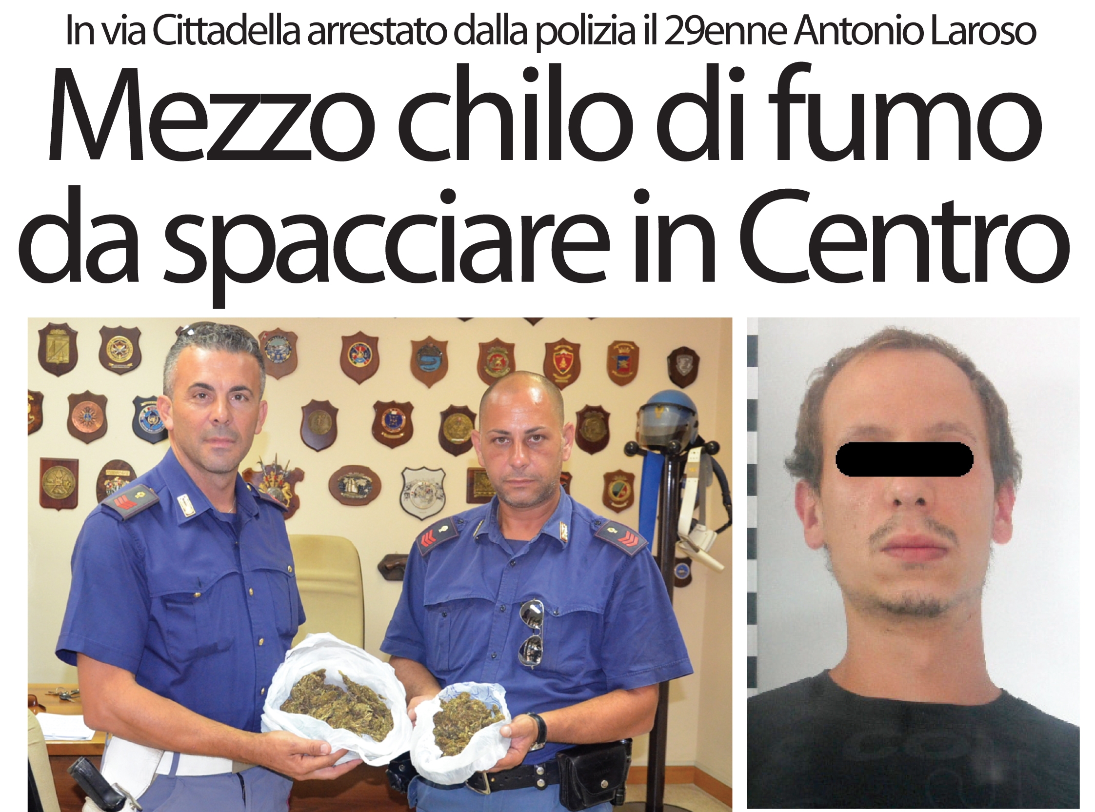 Mezzo chilo di marijuana destinata alla movida estiva, che avrebbe probabilmente spacciato anche durante i festeggiamenti di san Teodoro in corso questi giorni, ce l’aveva nascosta in due buste dentro l’armadio di casa sua, in via Cittadella, insieme con bilancini e altro armamentario utile a dosaggio e confezionamento. È per questo motivo che gli agenti delle Volanti diretti dal vicequestore Alberto D’Alessandro, in collaborazione con i colleghi del reparto prevenzione crimine di Lecce, hanno arrestato il brindisino Antonio Laroso, di 29 anni.