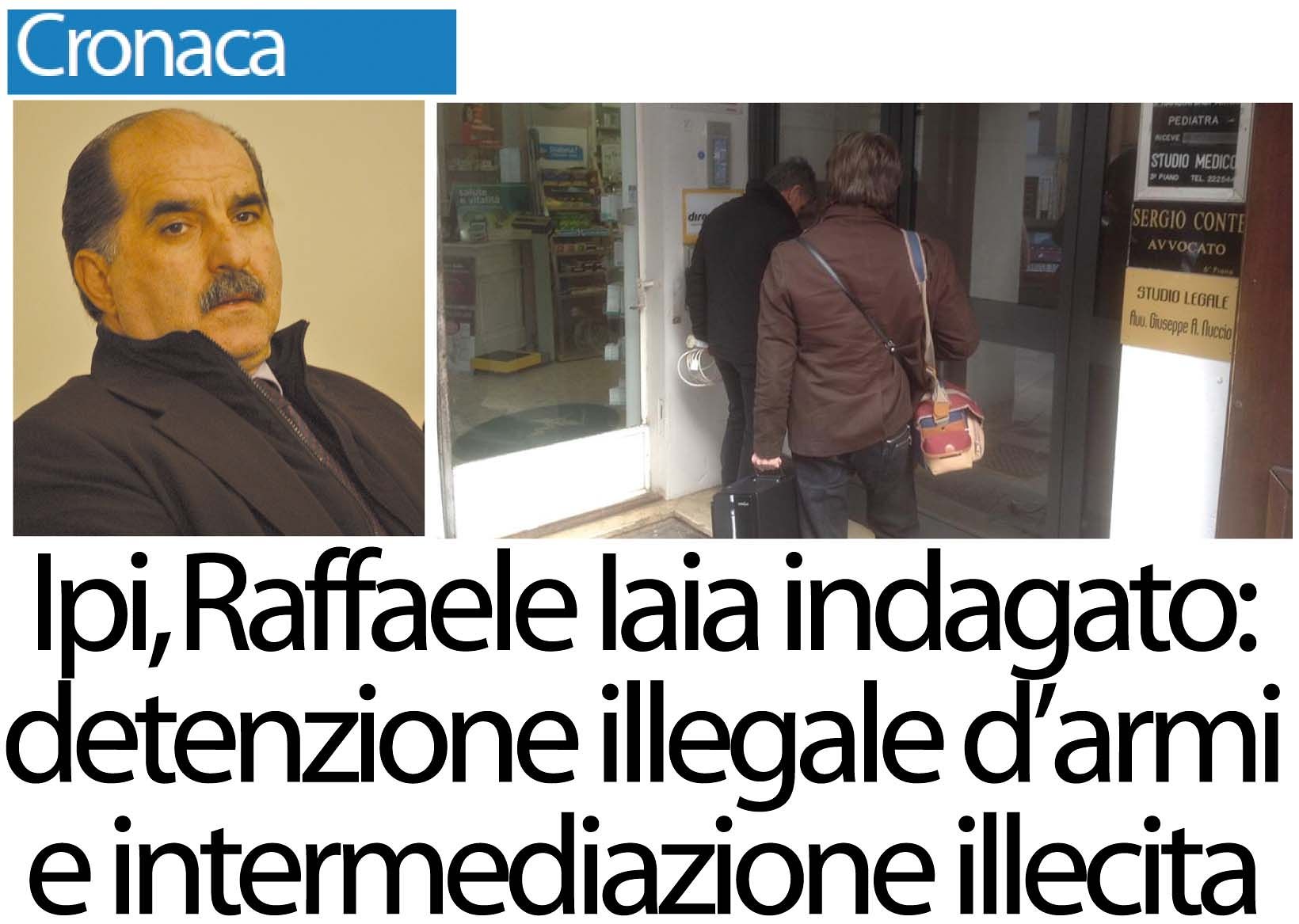 Intermediazione illecita e detenzione illegale di armi. Sono le ipotesi di reato contenute nell’avviso di garanzia consegnato stamani dagli agenti della Digos diretti dal vicequestore Vincenzo Zingaro all’assessore comunale Raffaele Iaia, durante la perquisizione presso l’agenzia Ipi, in via Terribile, intestata alla sorella (lui, oggi, non figura più tra i soci). Iaia risulta indagato assieme a Paola Cocozza, presidente delle scuole di formazione “Asform” e “Form sport” di Taranto: le accuse per lei sono falso in scrittura privata, truffa aggravata e falso in atto pubblico.
