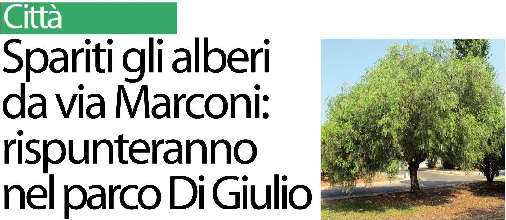 Superato questo periodo, quasi come se fossero in un’incubatrice, i falso pepe di via Guglielmo Marconi verranno piantati nel parco Di Giulio. Quindi nessun albero pubblico piantato nella dimora privata di qualche politico, nessun falso pepe finito «erroneamente» nella discarica o chissà dove, le piante torneranno ad addobbare uno spazio pubblico, parco Di Giulio, e questa è sempre una bella notizia.