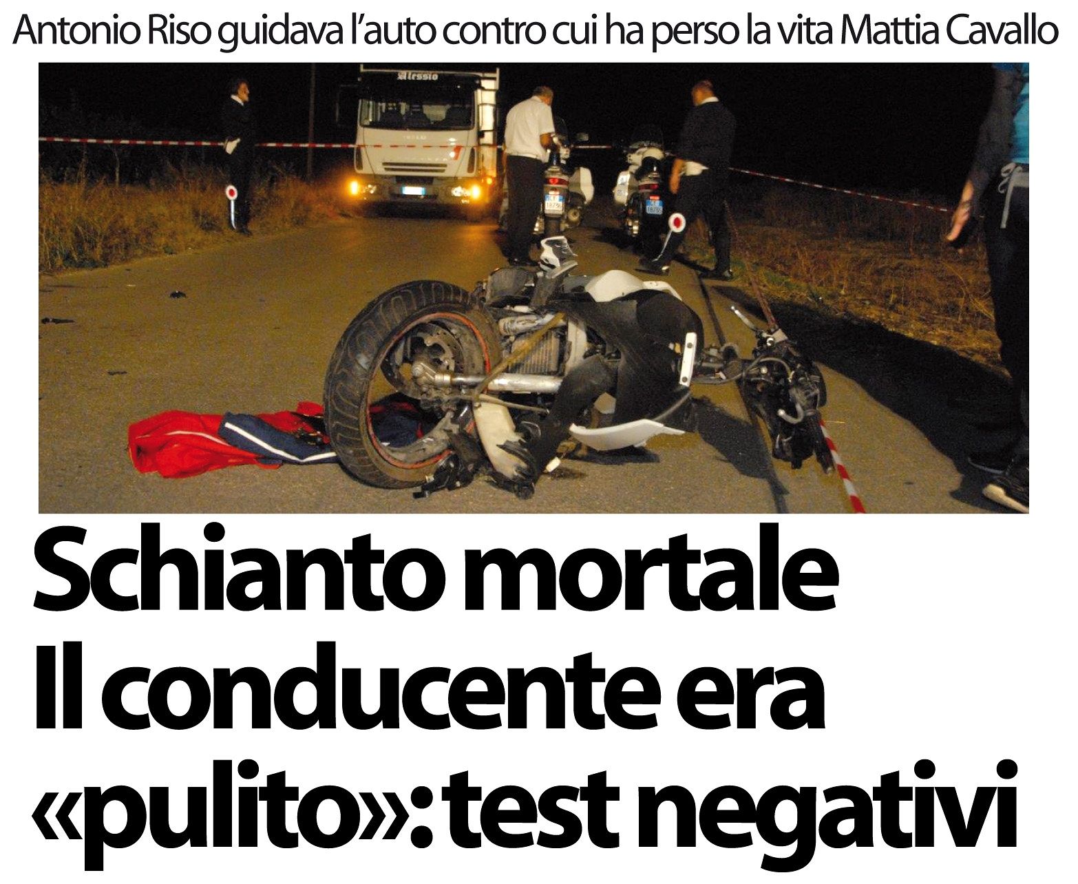 Antonio Riso, l’uomo di 71 anni che era alla guida della Fiat Bravo contro cui il 16enne Mattia Cavallo è andato a schiantarsi con il suo scooter perdendo la vita, non è risultato positivo ai test alcolemici e tossicologici. Il pensionato era stato accompagnato in ospedale, per essere sottoposto agli esami, negli istanti successivi al tragico incidente avvenuto ieri sera in via Specchia, alla periferia sud della frazione di Tuturano.