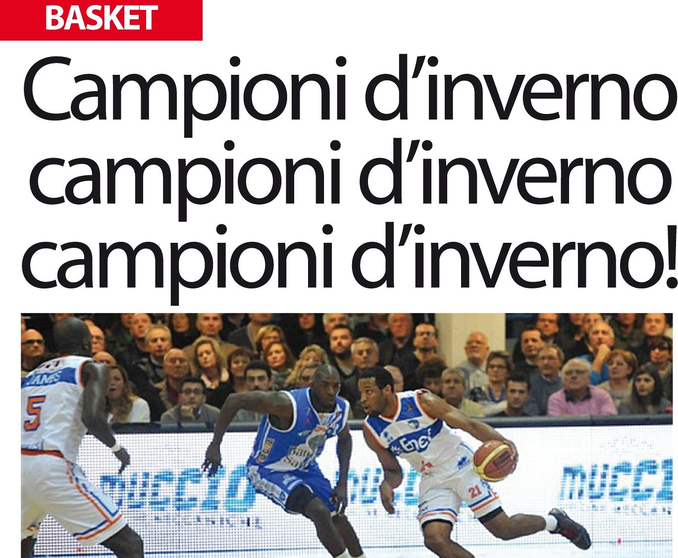 Campioni d’inverno, campioni d’inverno, campioni d’inverno. Probabilmente non è stato solo un grido ascoltato in televisione, ma il grido istintivo di tutti coloro che hanno assistito a questa storica partita. La New Basket Brindisi vince per 89 a 80 contro la Dinamo Sassari e si conferma in testa al massimo campionato di basket al termine del girone di andata.