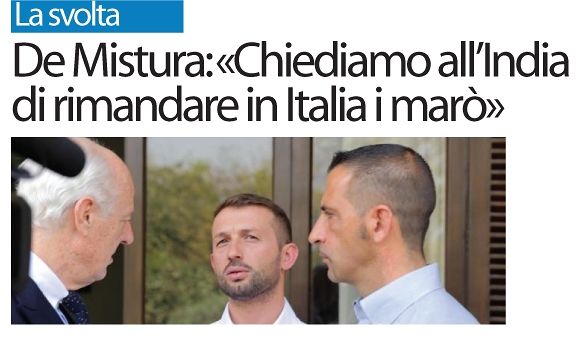 De Mistura: “Chiediamo all’India di rimandare in Italia i marò”