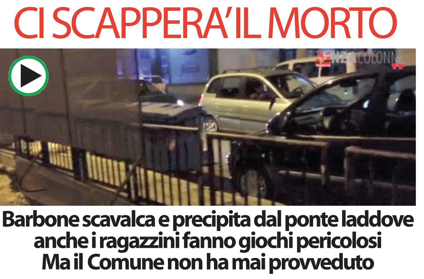 Prima o poi ci scapperà il morto. Lo abbiamo scritto giù alcuni mesi fa segnalando la pericolosità di quella ringhiera e il rischio che persino i ragazzini possano precipitare sotto il ponte perché abitualmente la scavalcano per andare a giocare nel parco sottostante. Questa sera un senzatetto che vive sotto il cavalcavia che collega la Commenda al Bozzano è precipitato facendo quella manovra che è una sorta di pericolosissima scorciatoia. L’uomo, un 50enne tedesco che vive insieme a una compagna, in condizioni di estremo degrado, fortunatamente ha riportato solo qualche livido. Ma gli poteva andare molto peggio. E’ stata una donna che camminava sul ponte a dare l’allarme: sul posto sono arrivati il 118 e i vigili del fuoco a prestare i primi soccorsi. Ma la situazione di estremo pericolo resta. Basta guardare il servizio che abbiamo girato sul posto.