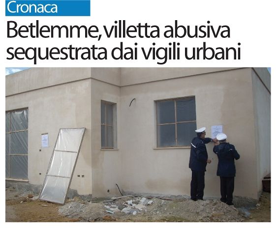 Betlemme, villetta abusiva sequestrata dai vigili urbani