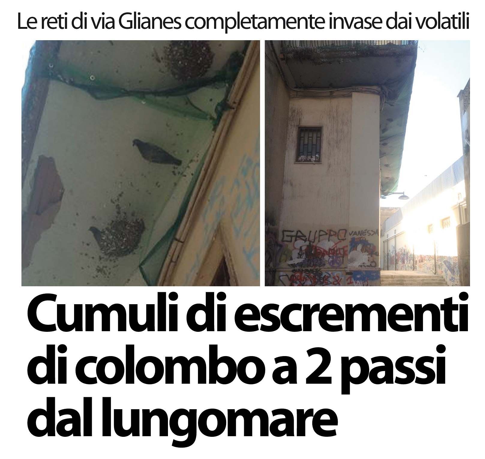 Infatti vico Glianes, la stradina divenuta territorio di questi volatili, collega via Filomeno Consiglio a via Guerrieri, a due passi dal palazzo Guerrieri, già scuola media Rubini e ora sede dello sportello anti racket-usura , e a via Dogana che porta direttamente al bar Betty e, proseguendo, al salotto buono della città. Un salotto circondato da “stanze” insozzate dagli escrementi di piccione, se si vuole continuare a usare una metafora immobiliare.