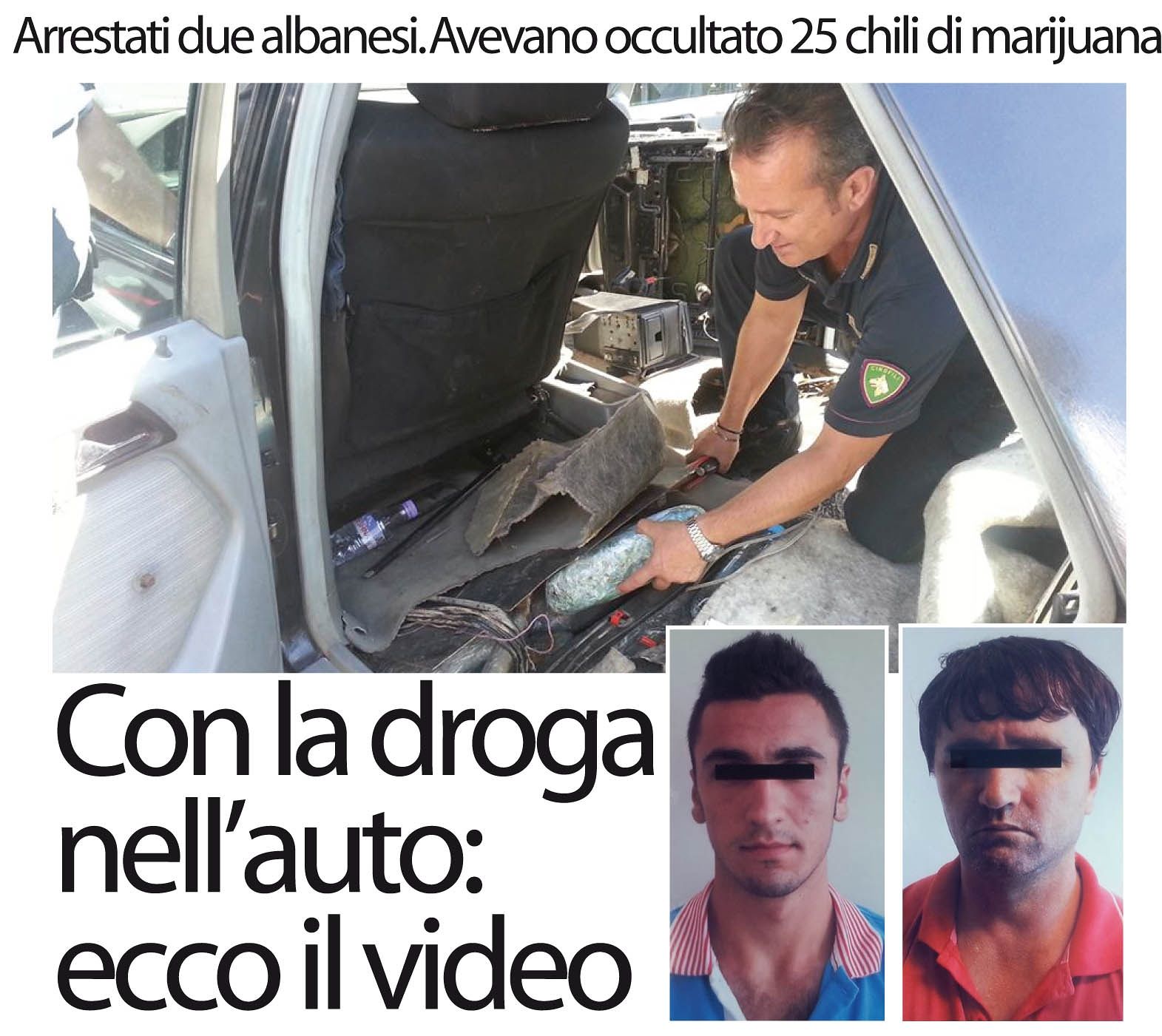 Marijuana che avrebbe fruttato più di 350 mila euro e diretta al mercato brindisino. Venticinque panetti, scoperti dalla polizia di frontiera di Brindisi, nascosti in un sottofondo di una Mercedes 300 D sbarcata ieri mattina dal traghetto Catania partito dal porto di Igoumenitsa (Grecia). A bordo dell’auto c’erano due albanesi, un 20enne Enel Aliaj e Artur Xhanaj di 34 anni, entrambi incensurati, che sono stati arrestati per traffico internazionale di sostanze stupefacenti.