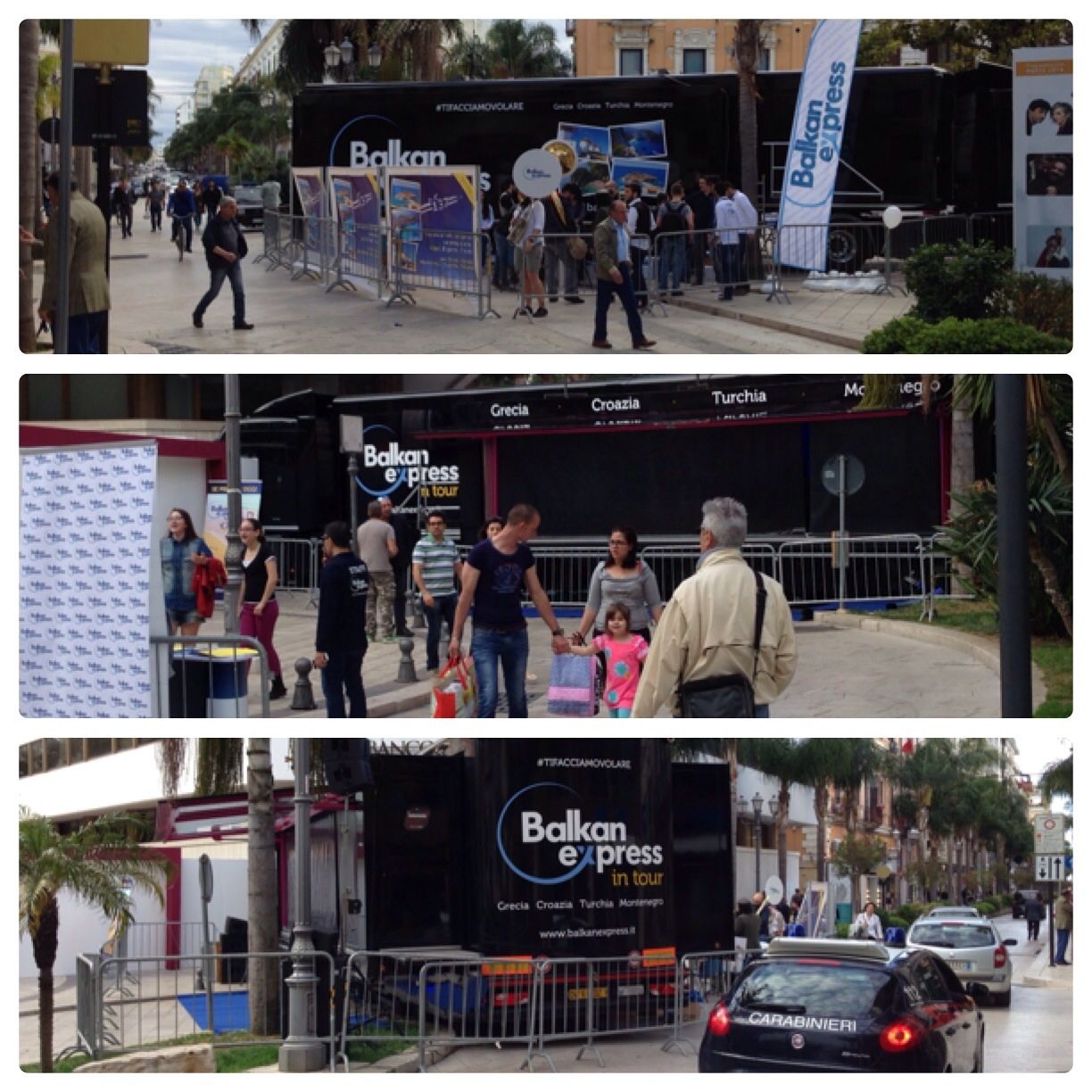 Questa è pura follia: un autotreno parcheggiato sul corso che promuove viaggi turistici. Passaggio pedonale bloccato, transito stradale limitato, nel cuore della città, di sabato sera in piazza Vittoria. E che ne sarà del basolato? Questa è anche Brindisi.