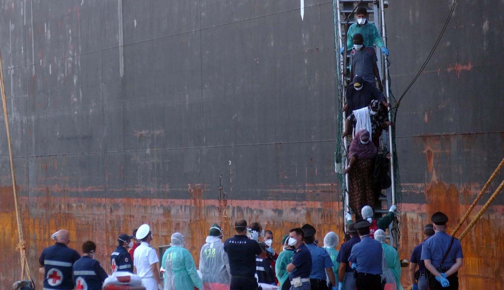 Il mercantile ha attraccato al porto di Costa Morena est scortato da due rimorchiatori. Per il soccorso dei migranti sono state allestite sulla banchina del porto sette tende da campo. L’accoglimento è stato coordinato dalla prefettura. Prima di scendere dalla nave, i migranti sono stati visitati da personale del 118 che ha escluso emergenze di carattere sanitario. Ad eccezione di cinque di loro disidratati, tra cui le due donne soccorse al largo di Otranto, tutti gli altri sono apparsi in buone condizioni.