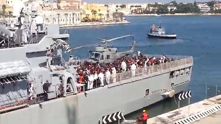 È giunta nel porto di Brindisi questa mattina alle 9.30, con mezzora d’anticipo sull’orario previsto, nave Scirocco con circa 750 migranti salvati dalla nostra Marina militare nelle acque del canale di Sicilia. Già in funzione il dispositivo di accoglienza pianificato ieri pomeriggio dalla prefettura di Brindisi e che vede tutte le forze dell’ordine impegnate, insieme a Capitaneria di porto e Protezione civile di Brindisi. Un campo di prima accoglienza è stato realizzato nell’ex capannone Montecatini. Le operazioni di sbarco e di verifica delle condizioni dei migranti sono rese difficoltose dal grande caldo.