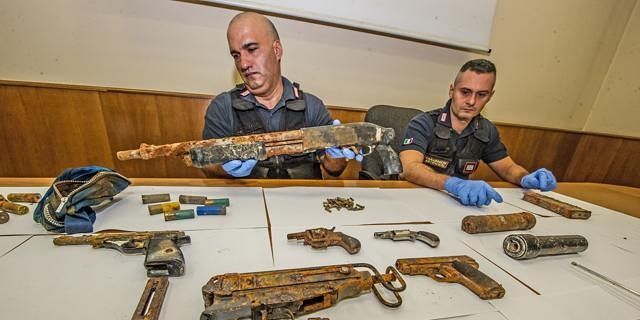 Nel bagagliaio dell’auto le armi erano in sacchetti di nylon e fogli di giornale. «Le abbiamo trovate per strada», si sono giustificati. A bordo della vettura c’erano una vanga sporca di fango e terra, proprio come fucili e pistole.