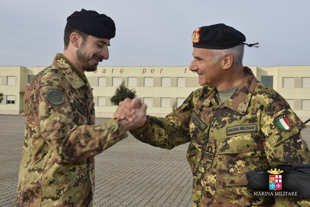 Nel corso della cerimonia il Comandante del 1° Reggimento, capitano di vascello Massimiliano Grazioso, ha voluto salutare pubblicamente, con il plauso del Comando della Brigata e di tutti i Fucilieri del San Marco, il Sig. Simone Iaci – ex Fuciliere della Brigata Marina san Marco che, l’11 dicembre 2011, durante una normale attività di pattugliamento a bordo del proprio mezzo (VTLM-Lince), nel corso dell’Operazione ISAF in Afghanistan, a seguito di una esplosione IED rimaneva ferito, perdendo in seguito alle lesioni subite, l’idoneità M.M. passando all’impiego civile.