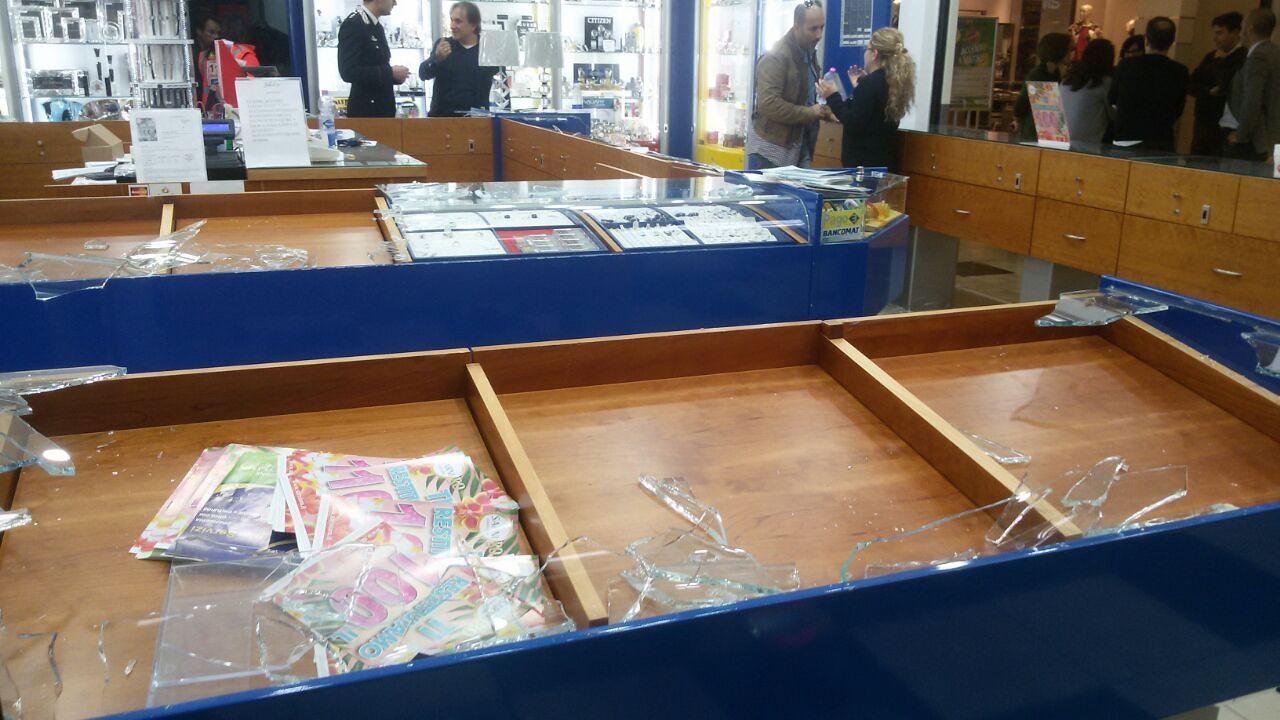 Hanno compiuto due viaggi velocissimi facendo la spola tra la gioielleria e l’uscita del centro “Le Colonne”. Durante l’ultimo viaggio uno dei banditi è inciampato nel tappeto rovinando sul pavimento e perdendo una parte dei gioielli.