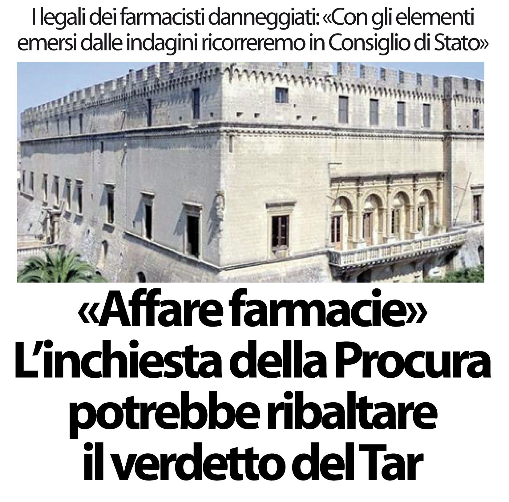 A ipotizzarlo sono gli avvocati dei due farmacisti danneggiati da quella delibera. Dopo aver perso il primo ricorso davanti al Tribunale amministrativo, potranno ora ricorrere in secondo grado davanti al Consiglio di Stato forti delle verità contenute nel provvedimento della Procura di Brindisi.