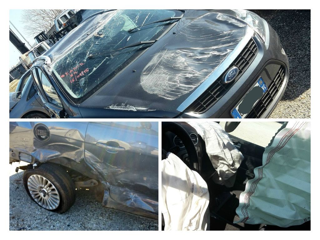 L’auto è nelle condizioni in cui si vede nella foto. Semidistrutta, probabilmente non recuperabile. Dei ladri-banditi nessuna traccia, fuggiti a piedi nelle campagne dopo l’incidente, magari feriti.